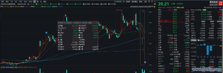 二级市场方面,Wind数据显示,公司自1月7日20CM跌停后持续走低,截至1月9日收盘,本周累计跌26.59%,最新市值报129亿元。